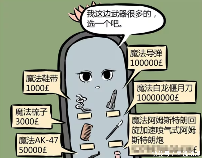 魔镜哪吒其他莫得,火器倒是许多。比如魔法鞋带,需要1000;魔法梳子,也要3000。像魔法AK-47,魔法导弹,那价钱齐要5万、10万。愈加离谱的还有白龙偃月刀,一把1千万。终末的魔法阿姆斯特朗回旋加快喷气式阿姆斯特朗炮,更是达到天价。