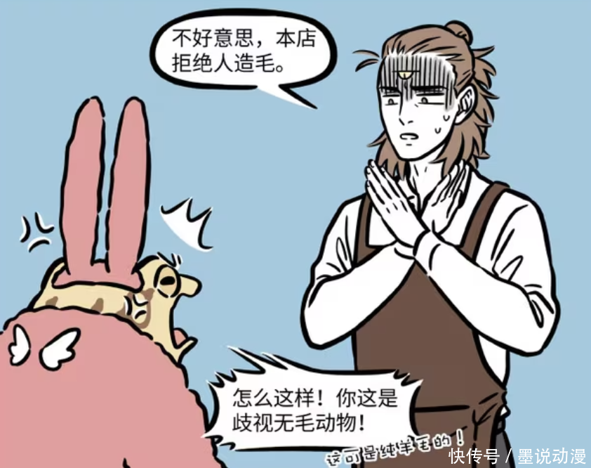 杨戬再度拒却阿呱,暗示本店拒却东说念主造毛。阿呱很失望,再度吐槽杨戬这是厌烦无毛动物。另外阿呱还暗示它身上这件穿着,但是纯羊毛。不外不知说念为何,阿呱这样捏着要入职动物咖啡厅,难说念这里有它介意的东说念主?