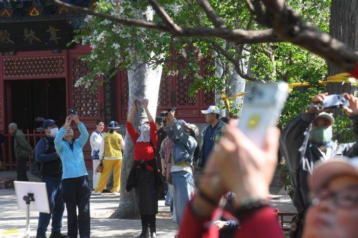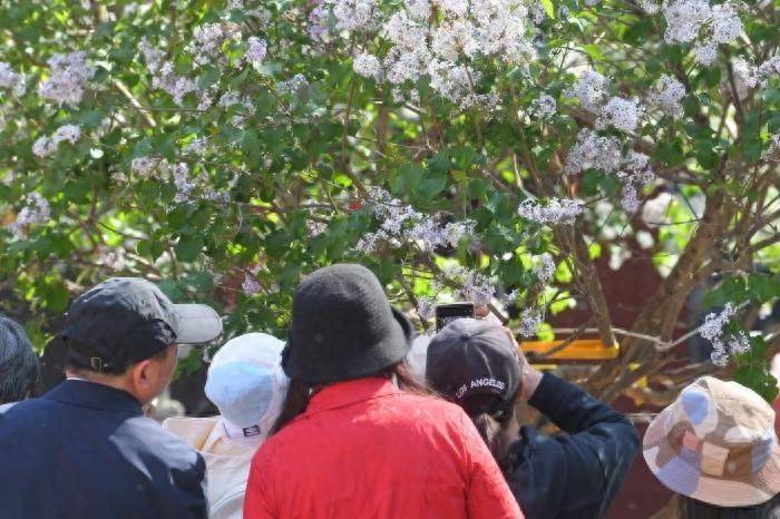 寺内游东说念主逐渐链接,宽敞旅客皆集丁香树下,选取不同角度拍摄似锦,定格春日好意思好斯须。