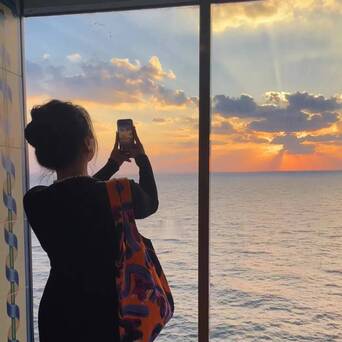 海上日落超等无敌好意思,另一侧的一又友说看到了很好意思,不外我自己也分不清东南西北 没搞懂奈何回事,在海上实足嗅觉不到我方在转移,独一半夜东说念主静躺在床上的时刻有嗅觉,近似在火车卧铺吧。
