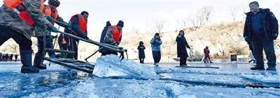 r2025年12月20日,延庆玉渡山忘忧湖畔,龙庆峡冰灯艺术节采冰典礼现场r