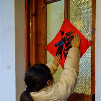 乡村年味体验:贴对子,贴福字,许下新年愿望,将迂腐的年味传承下去。