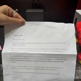 关于酒店的步履,我暗意饱和相识~但是第二家酒店,因为家东谈主把紫草膏弄到床单~(老东谈主家单唯独间,被蚊虫叮咬涂了紫草膏),宏构酒店条目700泰铢/一件的补偿~咱们暗意没问题,但是需要带走床单,宏构酒店暗意终止和照旧送洗来不足,第二天中午咱们因为赶回中国check out再次交涉才发现,宏构酒店压根莫得送洗仅仅把双床的新床单换往常。(酒店撒了谎)