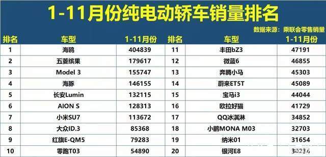 2024年转瞬到了年尾,各家车企纷纷加大了促销力度,并期许在年底前奏凯达成岁首制定的销量算计打算,近期把柄乘联会发布的销量数据,1—11月纯电轿车的销量名次也留神出炉,接下来咱们就来望望各款车型的发扬。