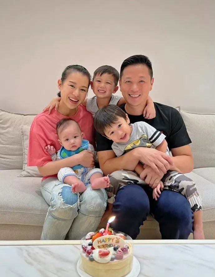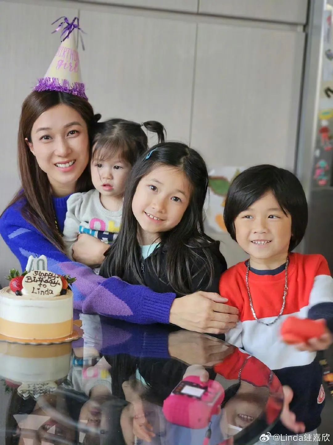钟嘉欣2015年与大13岁的大夫老公Jeremy成婚,2016年诞下长女Kelly,2018年8月诞下二胎犬子,2022年10月官宣三胎女儿出身。
