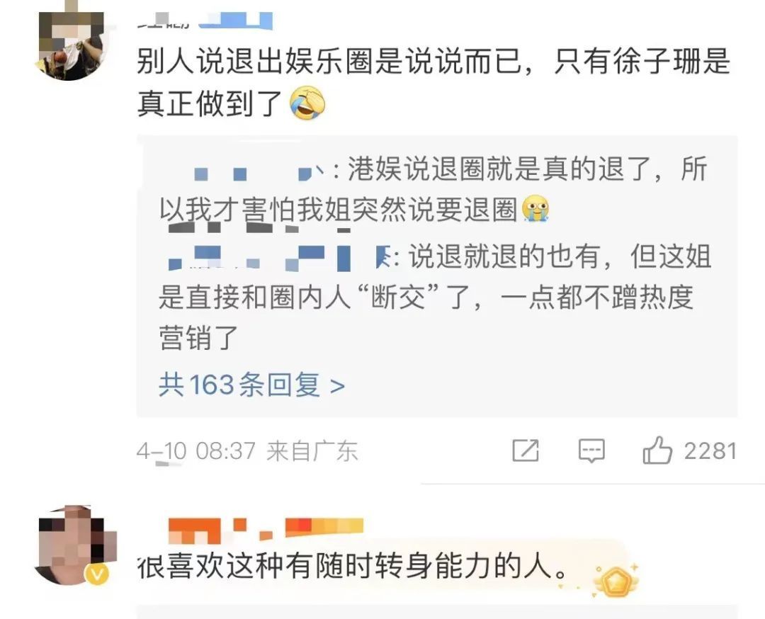 她退圈退得绝顶绝对,有网友默示很心爱这种随时能回身的东说念主,勇敢鼎新东说念主生办法。