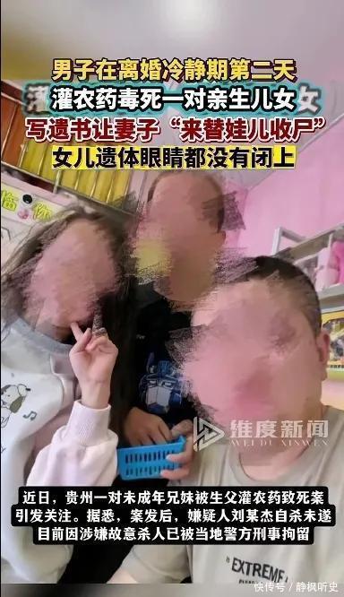 2025年6月12日,有网友在酬酢平台发文称,男人在离异镇定期的第二天鸩杀了我方的一对年幼的儿女,况且写下遗书要太太收尸,男儿死的本领眼睛齐莫得合上。       对其惨绝东说念主寰的悲催发生在贵州,一对未成年的兄妹被他们的父亲灌农药致死,老话说的好,虎毒还不食子,这名父亲的作念法几乎是比老虎还要毒。       是什么原因让这名男人对我方的一对儿女饱飨老拳呢,原来是因为男人的太太向法院提倡了离异诉讼,男人就在离异镇定期的第二天用农药毒死了,我方的一对儿女。       事发后,男人还试图自戕未遂,现在,这名男人因为涉嫌迥殊杀东说念主,被当地的警方照章刑事拘留了。       看到这么的悲催,果然是令东说念主万分酸心,关于这一对未成年的孩子来说,他们还没来得及感受这个全国的好意思好,就急忙的离开了,而凶犯照旧他们最亲的东说念主。       从这件事情就不错看出开云kaiyun体育,这名男人的行事特殊的顶点,其实他和太太亦然在东莞打工的本领,在电子厂意志的,属于解放恋爱。       其时他们的恋情还遭到了两边父母的反对,不外最终两东说念主照旧奉子授室,自后他们又有了男儿,底本这是一个幸福的四口之家,没念念到丈夫却沾上了赌博的恶习。       齐说十赌九输,但凡沾上赌博的赌徒,就莫得一个有好下场的,这名男人当然也不例外。       为了供养一家四口,太太只得开启了直播带货,然则因为太太在直播带货的本领和网友的互动太亲密了,又激励了男人的活气,频频对我方的太太推大众庭暴力。       这即是最没用的男东说念主,我方无法养家生存,一家东说念主的生活齐要仰仗我方的太太。直播带货,遵守还要对太太推大众庭暴力。       太太在孰不可忍之下才提倡了离异,试念念一下,谁不念念我方的儿女有一个齐全的家?       这名男人眼见我方无法顽抗太太离异的脚步,于是便走上了顶点的说念路,念念通过这种尺度来挫折我方的太太,最终才造成了这起惨事。 一位来骄气庆的网友在挑剔区愤懑,就为了挫折太太,毒死我方的孩子,这么的作念法连兽类齐不如。