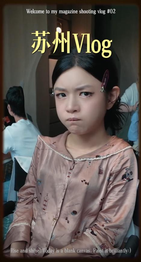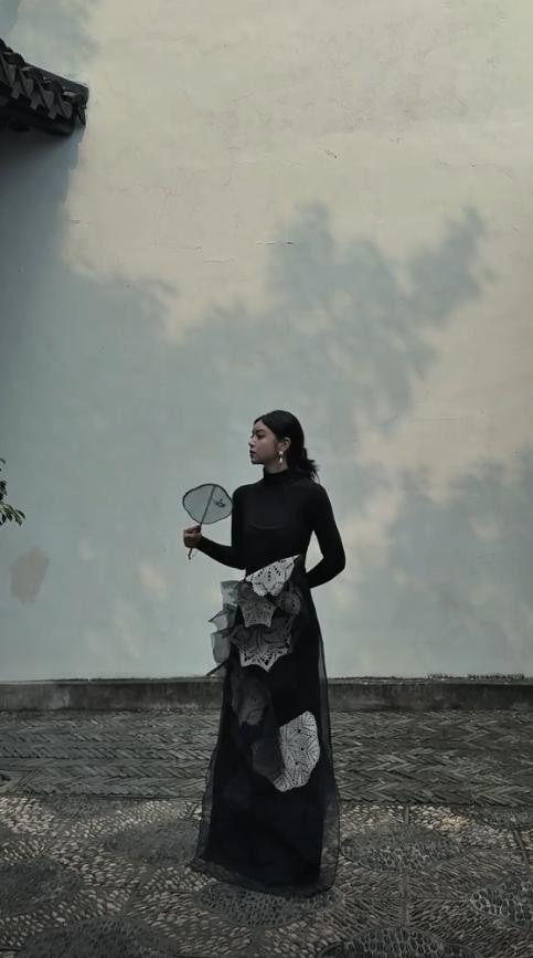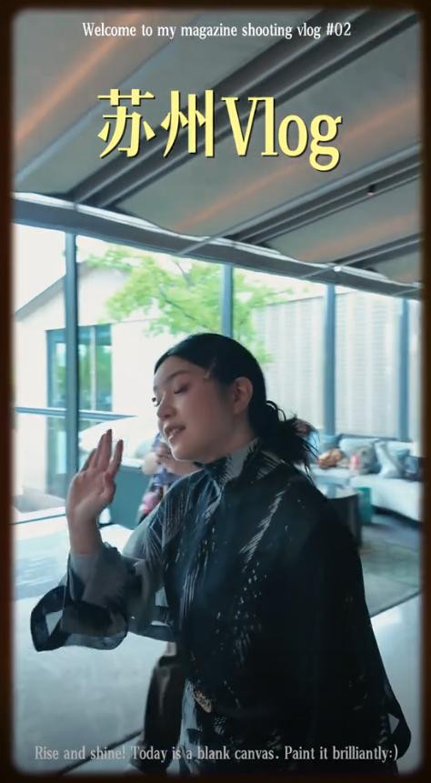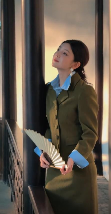这身衣服拍够素材后,她又回到了化妆间,换了孤独偏国风的长裙。
