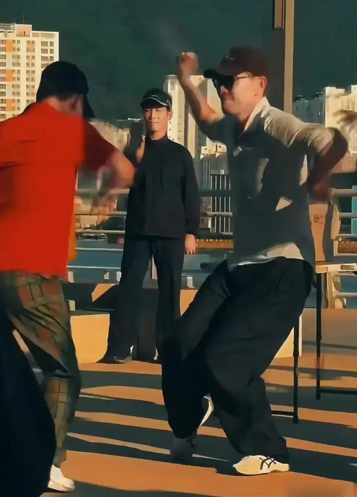 王千源,53岁,站在韩国釜山街头,跳起了广场舞。身高183厘米的他,衣服白衬衫黑裤子,戴着帽子墨镜,络腮胡子透着股枭雄味儿。成果,一群大妈拉着他加入“老年迪斯科”,他还真跟入辖下洋洋原意,看成有点拙劣,逗得旁东说念主直乐。