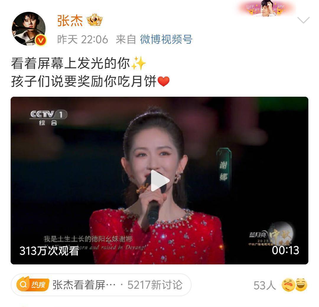 父母亲临现场不雅看,谢娜坦言“父母很吹法螺”。丈夫张杰发文“看着屏幕上发光的你”,见证其奇迹恣虐。