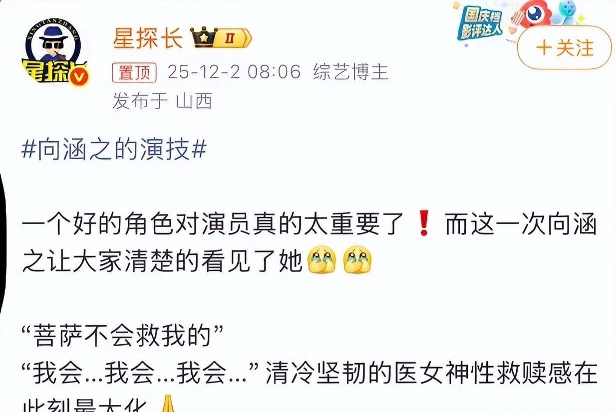 16 归来昔日,谁能思到向涵之会有本日这般高光时辰?昨年她在《仙台有树》中的推崇还饱受月旦,集合上充斥着“脸色呆滞”“辨识度低”的评价,豆瓣驳斥区更是通常出现“靠徐静蕾干系上位”的质疑声。