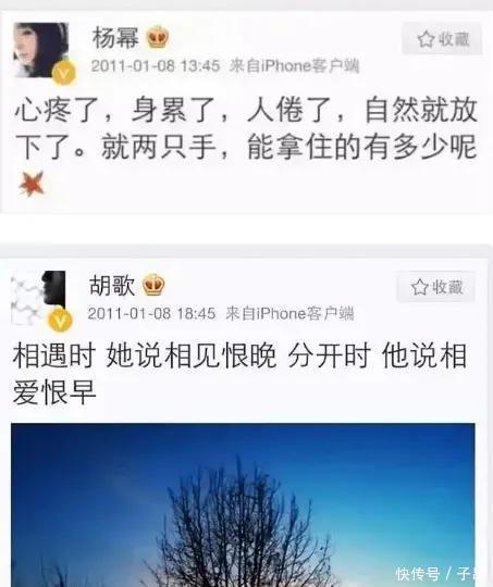 2011年1月8日,两东说念主同期发言不尽意的微博,杨幂写“水流花落”。