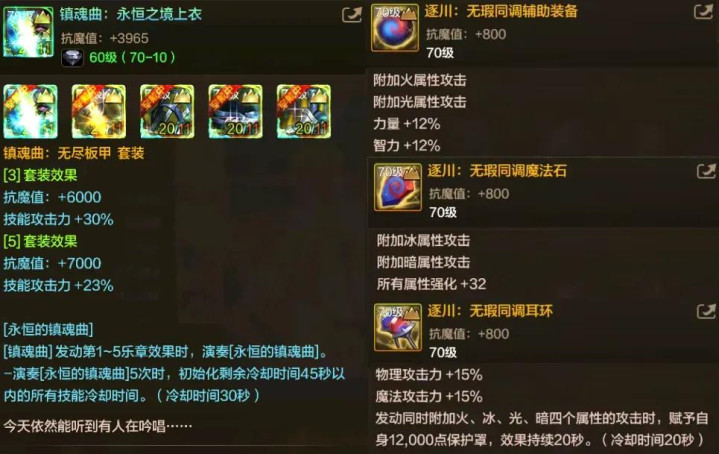 然后特殊装备贴膜选拔,镇魂曲搭配“3逐川”开云kaiyun,真学套搭配“镇渊左槽+2逐川/2击澜”!