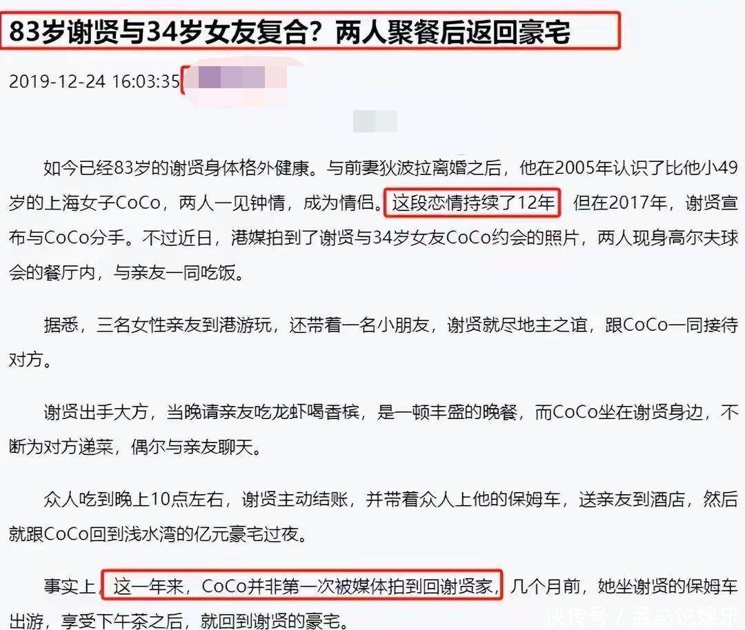 自2018年,81岁的谢贤晓谕与32岁的女友Coco分袂后,两东谈主就知道的在镜头前避让彼此,此番,Coco的共享让这段充满公论战议和外界预计的“忘年恋”再度激励怜惜。