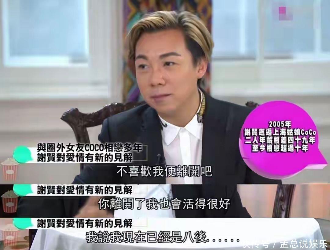 时隔七年,Coco生僻谈及与谢贤收支49岁的恋情。
