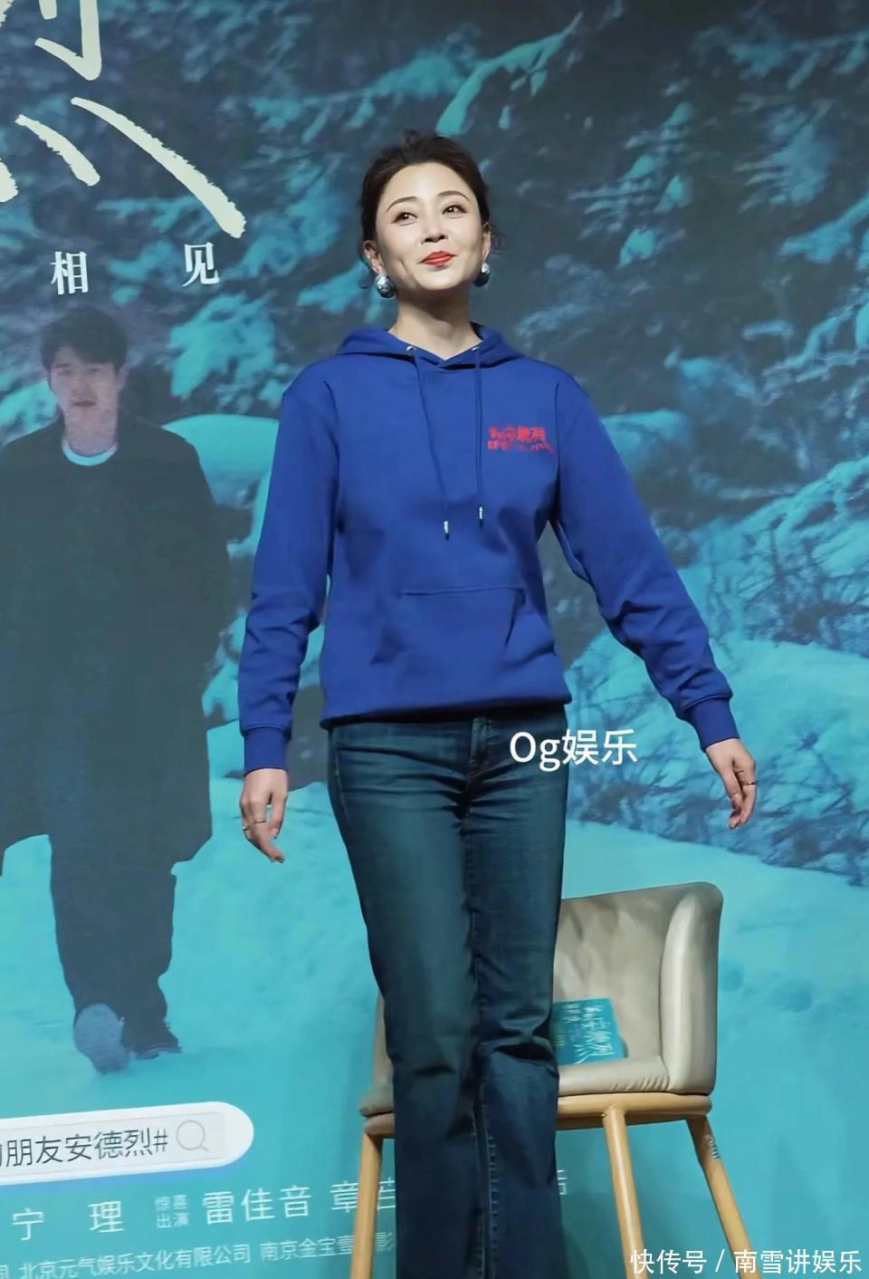 上了年岁之后的穿搭,色调越明艳证实独霸难度越高。殷桃穿好意思丽的色调,也曾能作念到均衡好肤色和穿搭质感的各式细节。此次她身穿宣传用的蓝色连帽卫衣,显得皮肤愈加皎洁!搭配蓝色修身微喇牛仔裤,失业前锋!