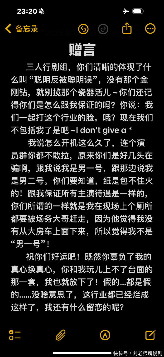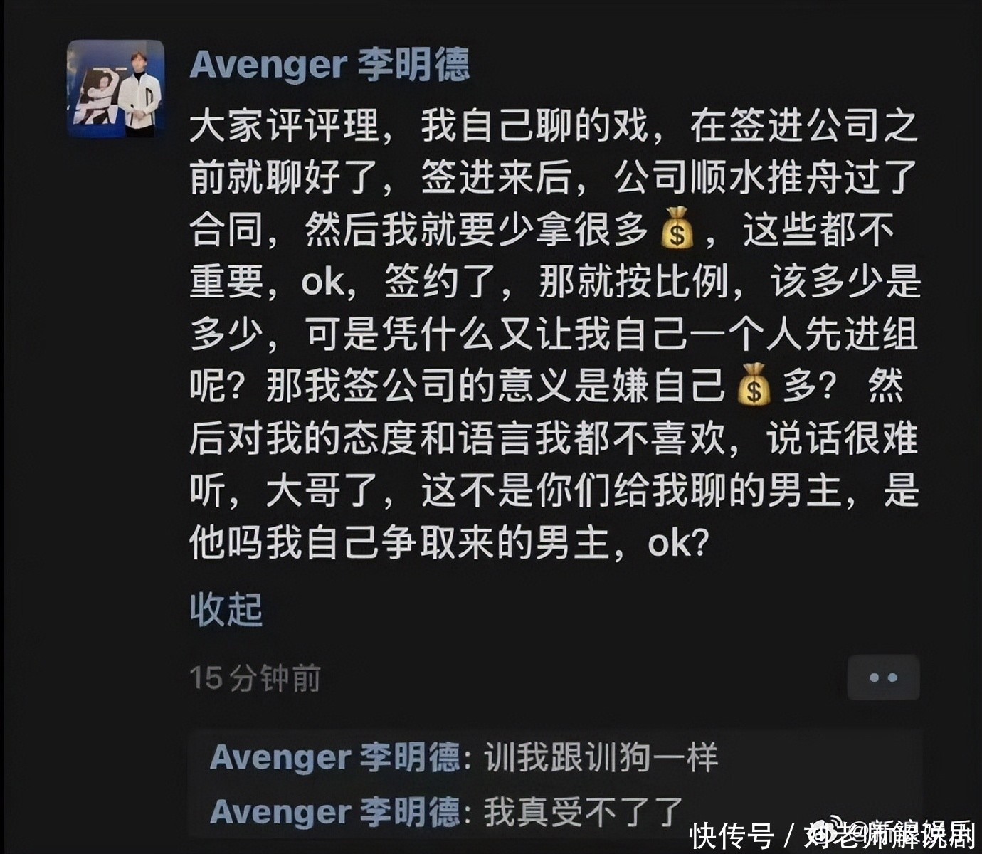 据他流露,我方参演的剧集《三东说念主行》其实是在签约和颂之前就仍是谈好的,但签入公司后,却因为合同问题导致我方少拿了好多钱。这让他心里很不是味说念,嗅觉我方被“坑”了。