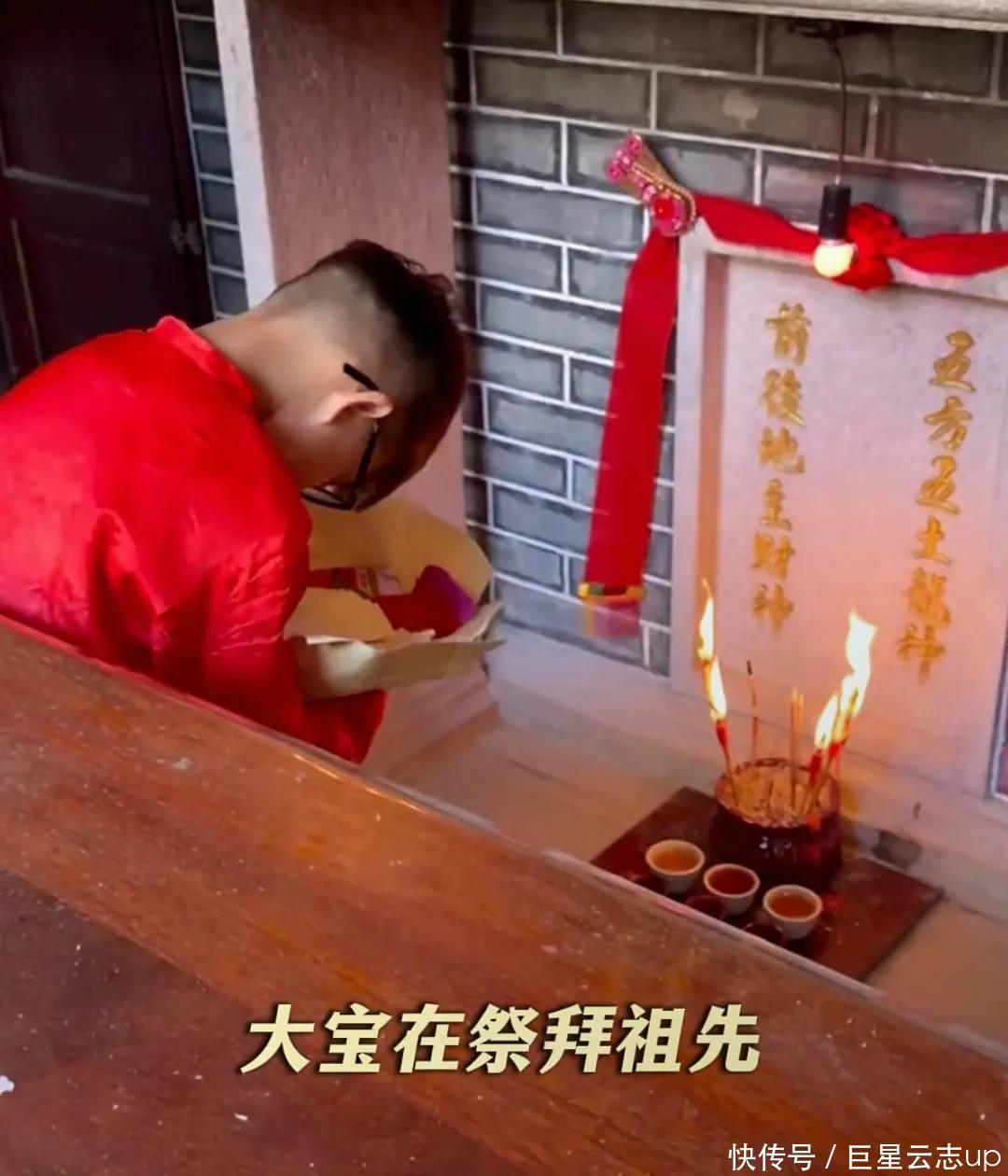 在整理祭拜物品的流程中,她莫得让三个男儿在傍边干等着,而是让他们一齐帮手倒茶、倒酒、上香。