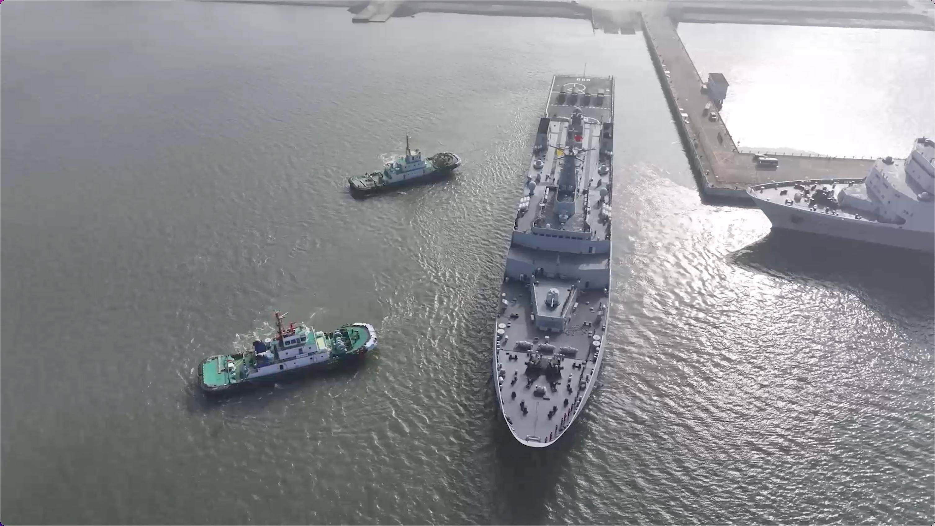舟师井冈山舰,舷号999,是舟师071型轮廓登陆舰。该舰于2011年11月28日入列当兵,总长210米,宽28米,排水量19000余吨。入列以来,先后实行亚丁湾护航、中柬“金龙—2023”联演等多项枢纽演训任务。