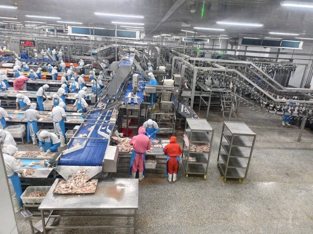 近日,走进位于潍坊诸城市的山东仙润食物有限公司,肉鸡屠宰车间和加工车间内一派忙绿状态开云kaiyun,传送带上,经过屠宰、脱毛、冲淋、分割等尺度化工序的生鸡,正环环相扣地“变身”为包装考究的鸡腿、鸡胸肉、鸡翅等居品,行将运往各地市集,端上千门万户的餐桌。